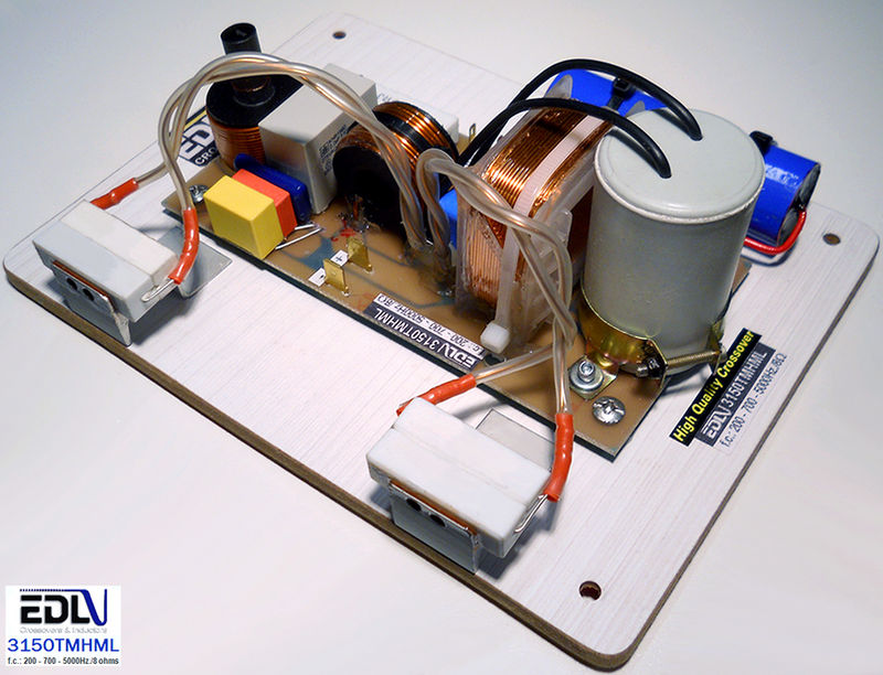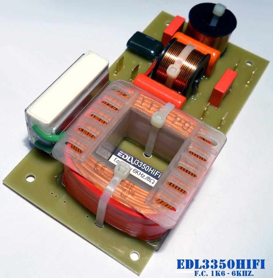 El EDL3350HiFi es un modelo de 3 vias que admite una potencia de 350 watts RMS/8 ohms, las frecuencias de cruce son 1K6Hz. y 6KHz. La línea "HiFi" de crossovers "EDL" está diseñada para obtener la más alta fidelidad, mediante una minuciosa construcción artesanal, cuidando todos los detalles y utilizando los componentes adecuados para lograr la mejor calidad audible, sin dejar de lado la seguridad para la protección de los transductores.