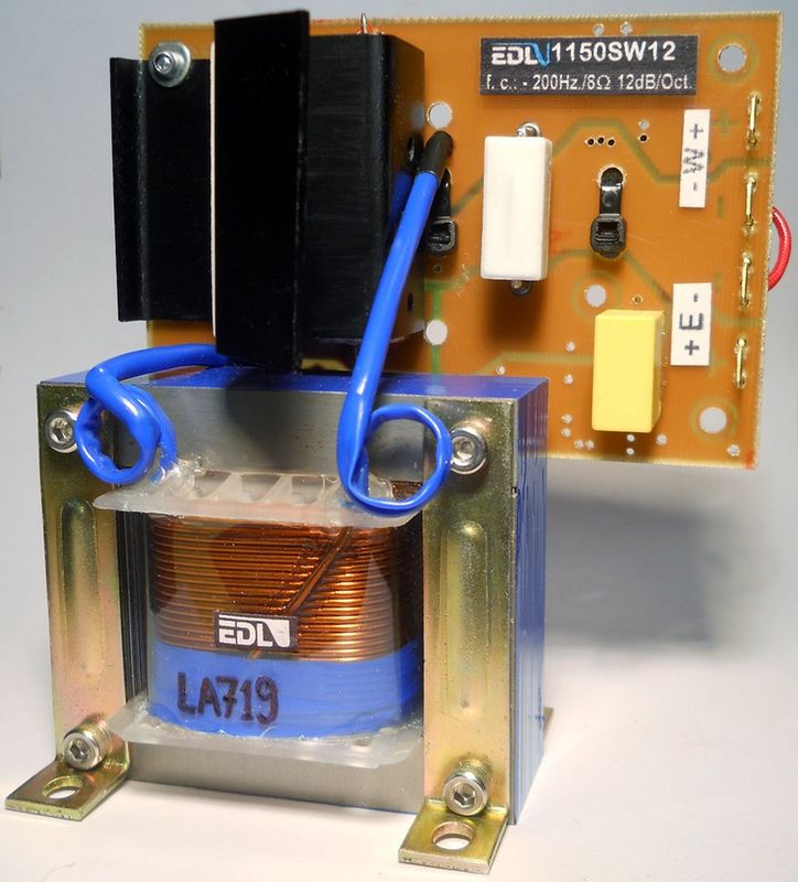 "EDL2300L2K5 " Vemos aqui uno de nuestros modelos mas simple pero efectivo. Crossover de 2 vias, para driver y woofer, con una frecuencia de cruce de 2500Hz./8 ohms, funciona perfectamente desde pocos watts de potencia hasta una potencia maxima de 300 Watts RMS. Con exelente equilibrio en las dos vias y sonido homogeneo sin perdida de agudos debido a la alta calidad del capacitor de poliester y sin perdida de bajos gracias al inductór artesanal "EDL" con núcleo de aire y alambre grueso con muy baja "rdc" o resistencia.