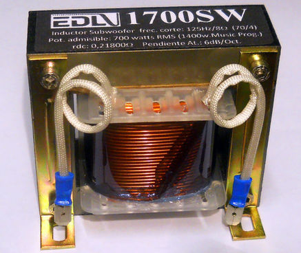 ¿ Se imagina un filtro pasa bajos para subwoofer, con una frecuencia de corte inferior a 125Hz., con una grán inductancia cerca de 10 mHy, con menos de 0,21800 ohms de resistencia en el alambre y que a su vez admita 700 watts RMS sin saturación del nucleo ni deformación de la señal? No lo imagine más, ya es posible con "EDL IRON CORE INDUCTORS" INDUCTOR PARA SUBWOOFER, PARA USO PROFESIONAL, Hi-Fi o HIGH-END. Apto para uso en alta potencia hasta 700 watts RMS o 1400 watts de Programa Musical, y también funciona perfectamente con bajas potencias. Cuando se pretende la maxima calidad, ofrecemos nuestros "EDL IRON CORE INDUCTORS" o inductores con núcleo de hierro, la mejor relación precio / calidad para obtener una altisima inductancia con una resistencia del alambre practicamente inferior a la resistencia de los cables entre el amplificador y el bafle. Realizados artesanalmente de forma muy robusta y solida, tensionado mucho el alambre mientras se bobina, mas un tratamiento final para eliminar las vibraciones. Cuanto menos resistencia del alambre MEJOR, por eso se utiliza una gran seccion de alambre para obtener una baja "rdc" o resistencia de la bobina, (todos nuestros inductores poseen una "rdc" inferior a O,3 ohms, siendo aptos para High-End) de esta manera no influye en el factor de amortiguacion del amplificador ya que el valor de 0,3 ohms no supera el 5 por ciento de la rdc de un parlante de 8 ohms de impedancia. (La rdc de un parlante de 8 ohms es aprox. 6 ohms y el 5 por ciento es 0,3 ohms)